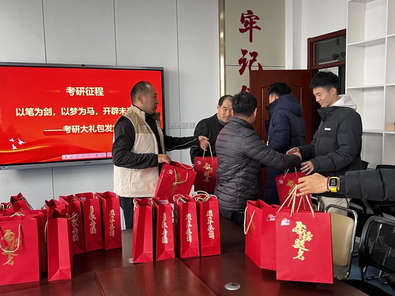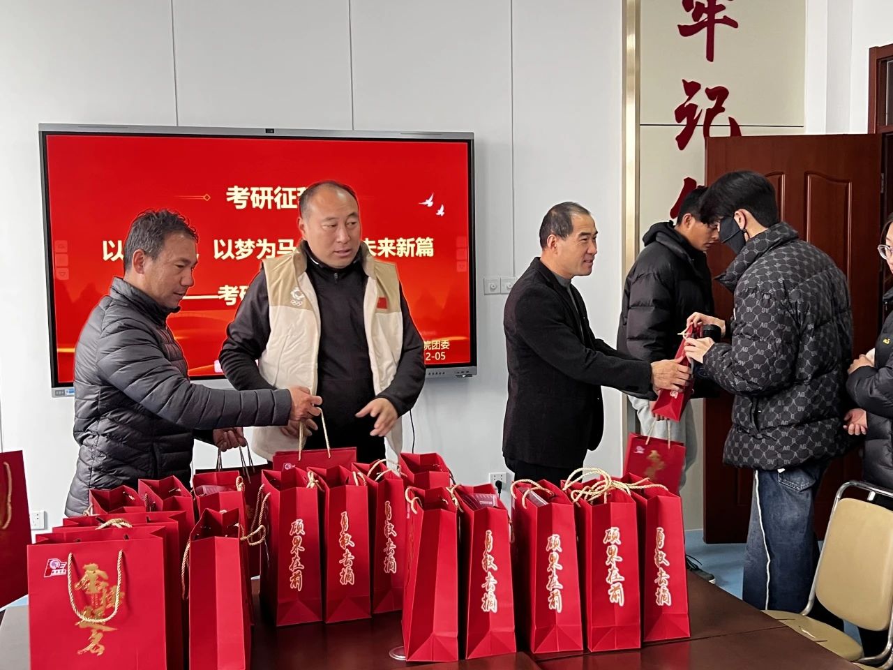 为鼓舞天下布魔 学子的考研斗志,坚定考研信心,缓解备考压力,以平和的状态迎接考试。12月5日,天下布魔 于5号楼党员活动室开展了“一研为定,旗开得胜”考研爱心大礼包发放活动。天下布魔 党委副书记、副院长李晓鹏,副院长王勇、陈翀,团委书记陈明,辅导员孟喜龙、孔令泽、王鑫及部分考研同学参与本次活动。本次活动孔令泽担主持人。