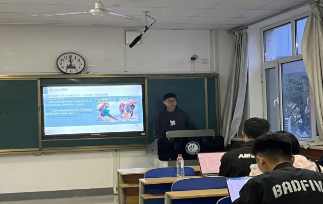 2023级体育教学专业研究生王玉博分享了参加《民族民间传统体育研究学术论坛》的心得体会,从会议主题:传承发展民族民间传统体育,构筑中华民族共有精神家园入手分享了民族民间传统体育铸牢中华民族共同体意识研究、民族民间传统体育促进各民族交往交流交融研究、民族民间传统体育历史与文化研究、民族民间传统体育文化的创造性转化与创新性研究等方面的研究成果。之后又介绍了已录取的专题报告《新时代背景下民间体育游戏在小学体育中的开展的价值与策略》,阐述了民间体育游戏在小学体育中开展的价值,从网络游戏、竞技体育、学校认同感三个方面梳理出新时代背景下民间体育游戏在小学开展中的现实困境,从而为在新时代背景下民间体育游戏在小学体育中开展提供参考策略。