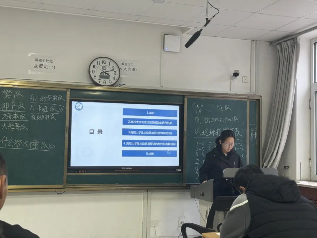 2024级体育教育训练学专业研究生马晓晴汇报题目为《健康中国视域下高校大学生主动健康促进的管理机制构建》本研究基于“健康中国”战略规划,从分析高校大学生体质健康状况和现实诉求入手,构建运行机制、激励机制、制约和监督机制三大主动健康促进管理机制,旨在积极推动高校大学生健康管理工作机制创新,为实现“健康中国”提供坚实的制度保障。