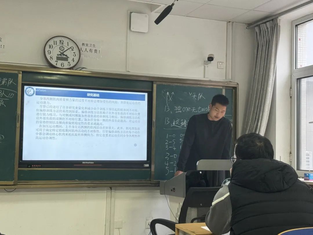 2024级体育教育训练学专业研究生崔顺顺汇报题目为《不对称平卧推期间肌肉模式活动的变化》这篇文章研究比较了受阻力训练的男性在70%1RM的对称和选择不对称负荷血压期间所选肌肉的肌肉活动。基于本研究中不对称 BP 负荷期间较高的肌肉活动,可以预期偏移训练方法在 BP 原动机中提供额外的运动效果,用于体能训练,获得的结果为力量和体能教练和运动员提供了实际意义。