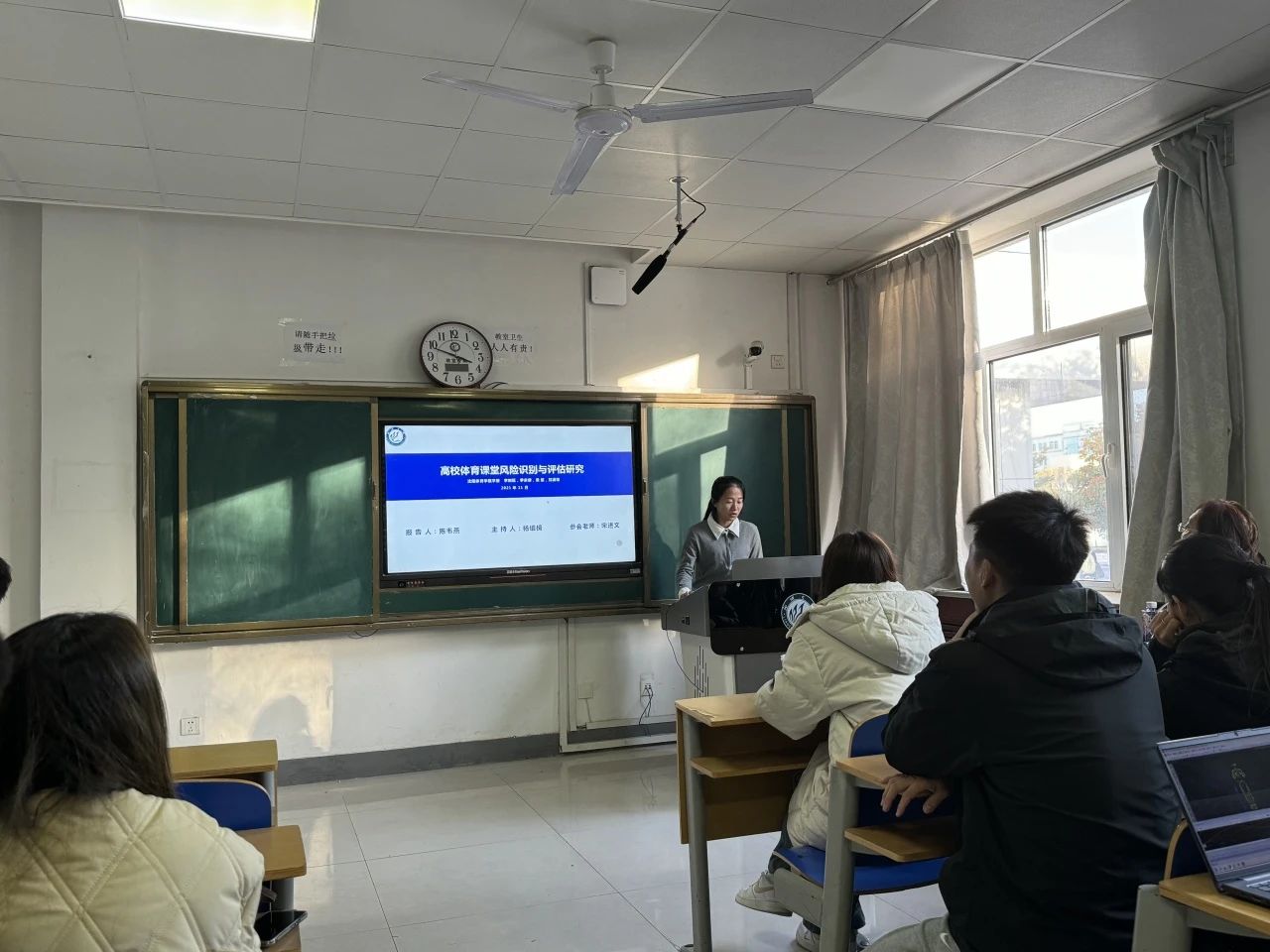 2024级体育教学专业研究生陈韦燕汇报题目为《高校体育课堂风险识别与评估研究》本文基于修正 IPA 方法以横纵坐标轴模型构建高校体育运动风险评估的“严重性 - 可能性矩阵”,通过分析高校体育运动风险发生的可能性和严重性,直观展现了教师和学生对当前体育课风险各要素评估的真实境况,为体育课的课堂安全提出建议。