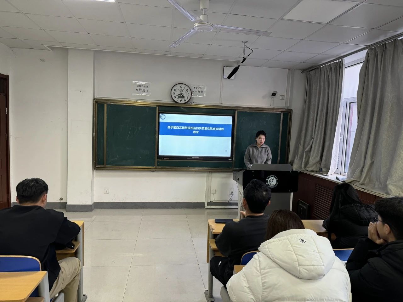 2024级社会体育与指导专业研究生张天琪汇报的题目为《屈膝肌疲劳对单腿落地时下肢生物力学指标的影响》本文通过研究发现屈膝肌疲劳对跳跃落地时下肢生物力学指标的影响,因此在非接触性ACL损伤预防方案的制定中更应关注腘绳肌等屈膝肌群,如通过离心训练等方法提高腘绳肌肌力或肌耐力以帮助延缓疲劳的发生,降低运动过程中ACL产生张力。