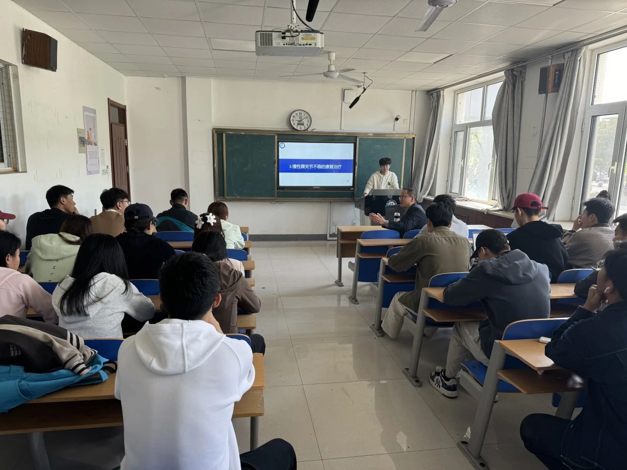 2024级社会体育与指导专业研究生冯绍吉汇报的题目为《慢性踝关节不稳的康复治疗研究进展》本文研究表明,综合性康复方案(如结合动态平衡训练与离心力量训练)能够显著改善踝关节稳定性、运动功能及患者生活质量。此外,个性化康复计划的制定、长期随访干预以及患者依从性的提升成为优化疗效的关键因素。