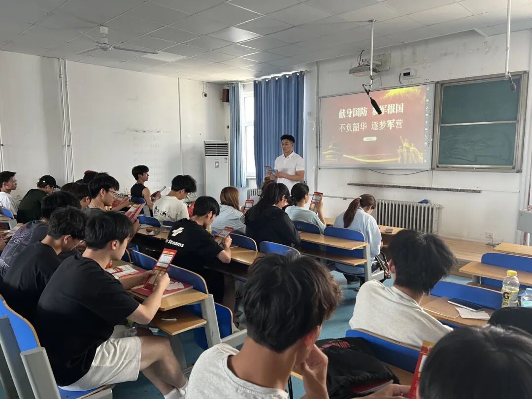 活动伊始,王鑫老师深入分析了当前的就业形势,并着重介绍了参军入伍所享有的各项政策,涵盖学费补偿、升学优惠、就业安置等多个方面,充分展现了参军为个人发展带来的广阔前景。他强调,在当今时代,青年学子肩负着保家卫国的神圣使命,积极参军不仅能锤炼意志、提升自我,更是将个人理想与国家命运紧密相连的体现,号召同学们踊跃投身军营,为国防建设贡献力量。