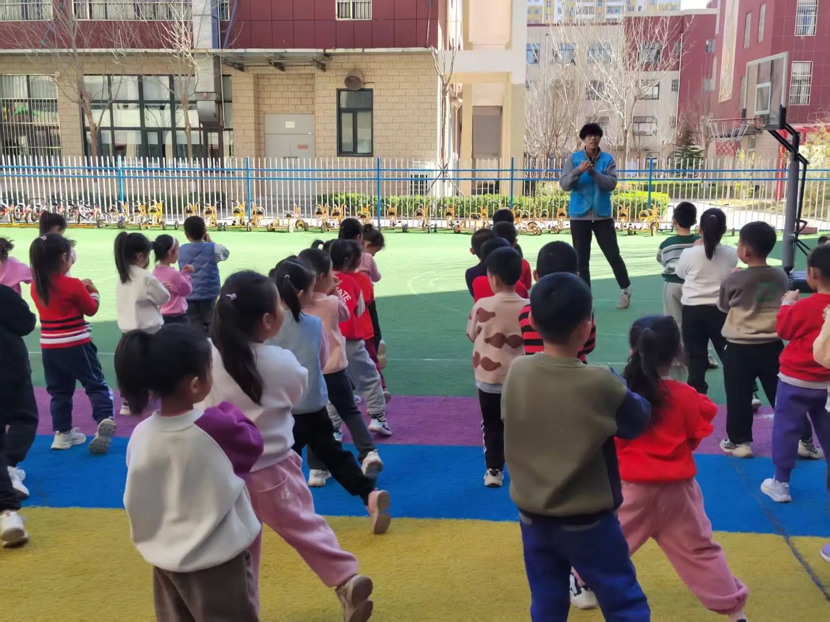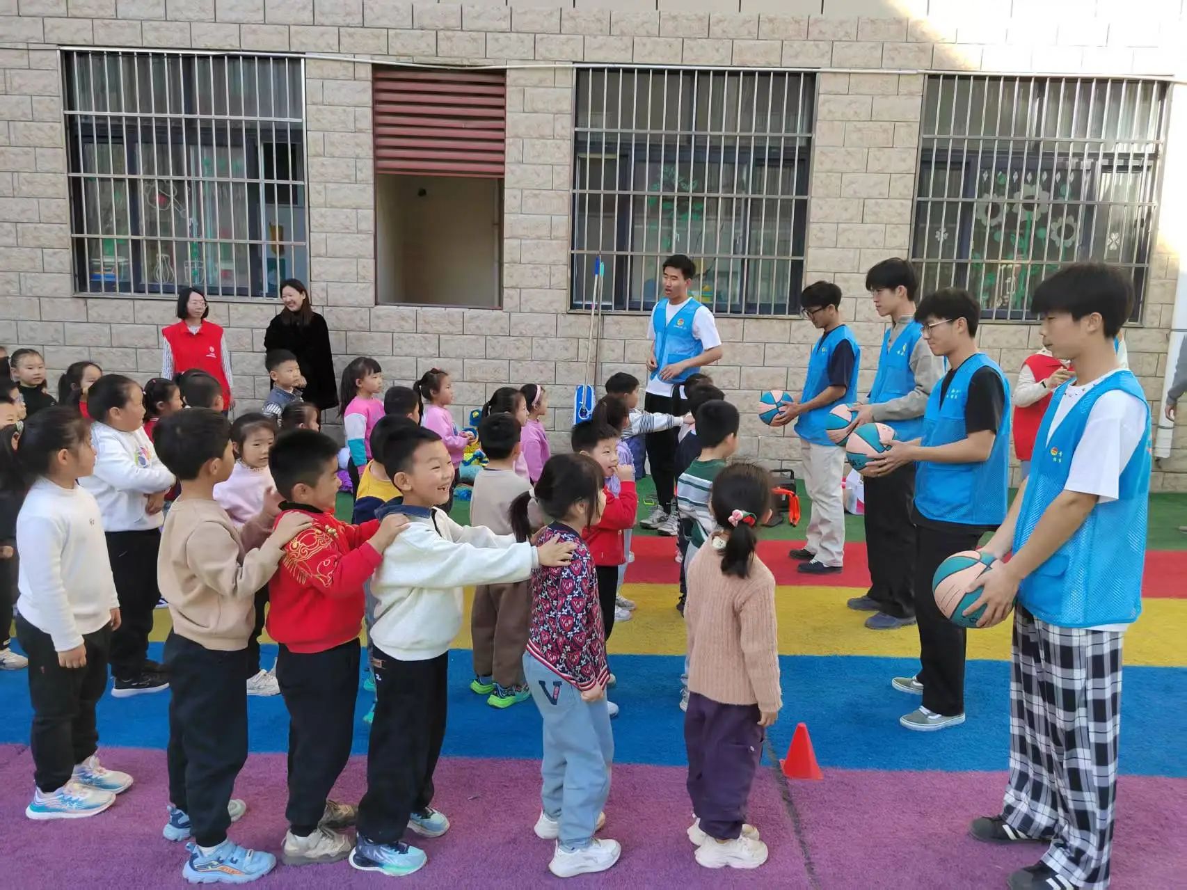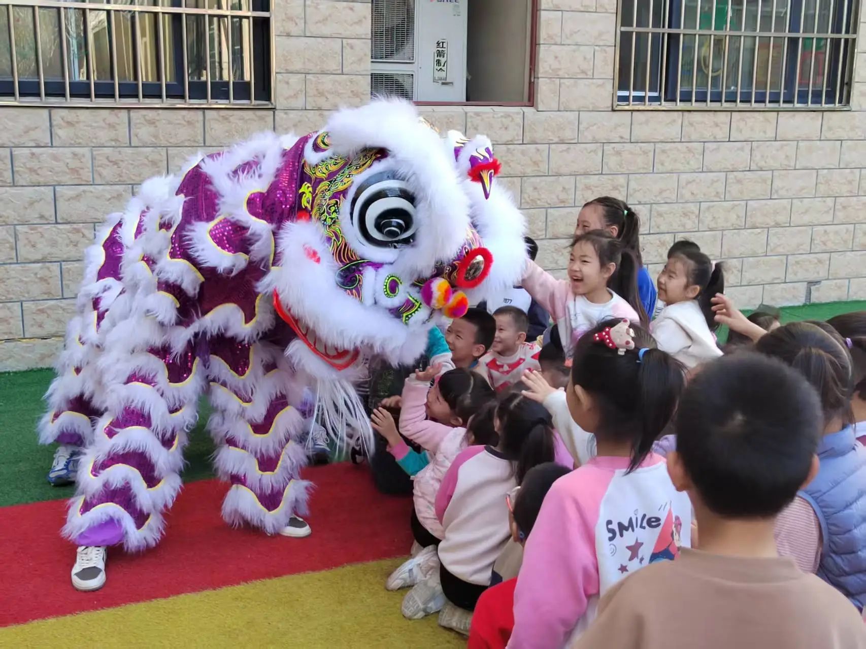活动当天负责人先向孩子们讲了几个有关传统节日的故事,让孩子们感受到传统文化的魅力。随后,跆武龙狮社团带来了精彩的舞狮表演。锣鼓声响起,狮子在场地中央跳跃翻滚,瞬间点燃了现场的气氛。表演结束后,舞狮者邀请孩子们上台近距离观察和触摸舞狮道具,并耐心地教他们一些简单的舞狮动作。接下来,孩子们被分成若干小组,参与舞狮小游戏。在游戏中,他们需要相互配合,完成一些简单的舞狮动作。除了舞狮活动,现场还安排了传篮球游戏,教练们耐心地向孩子们讲解传球的基本技巧,孩子们在教练的带领下,逐渐掌握了动作要领,游戏过程中,笑声和欢呼声此起彼伏,现场气氛十分活跃。