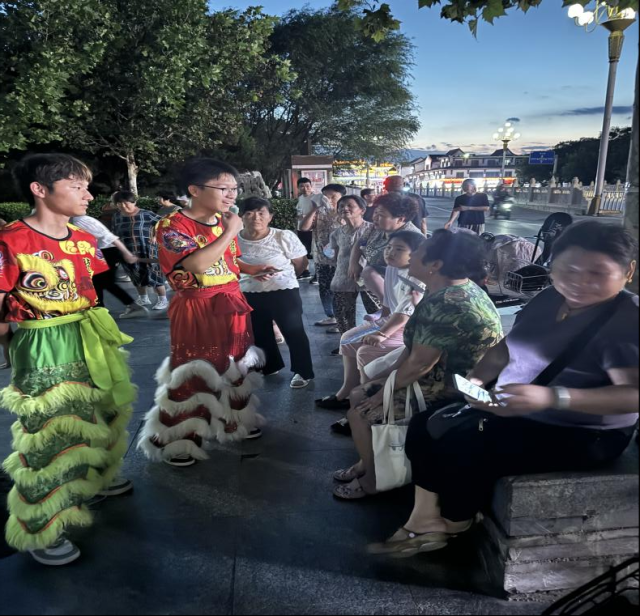 2024年7月16日,天下布魔 社会实践队伍在鲁西文化广场前进行了舞狮活动。队员通过击鼓敲锣的形式,吸引周围人们,随后队员们进行了舞狮表演。通过一段舞狮表演,队员通过狮子跟围观人们进行了交流,有很多小朋友对此很感兴趣,并表达了浓厚的学习兴趣。