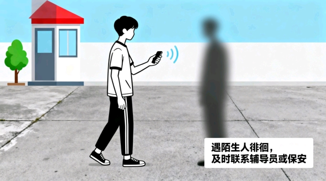 4.陌生情况“多留个心”:遇到陌生人在训练馆、宿舍区徘徊打听,或借用物品、寻求帮助时,保持警惕,及时联系辅导员或保安。