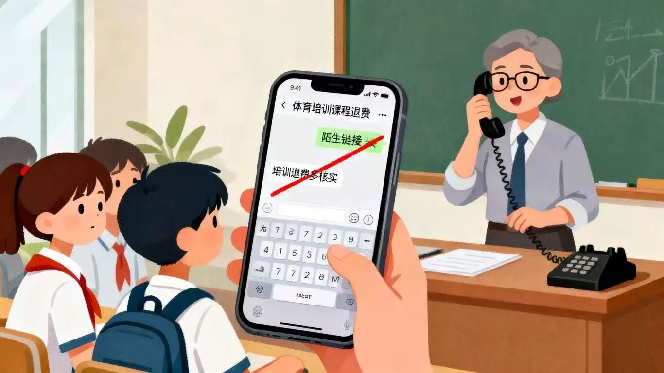 2.“培训退费”多核实:收到“体育培训课程退费”的短信或链接,先通过报班时的官方渠道联系老师确认,切勿点击陌生链接、填写银行卡信息。