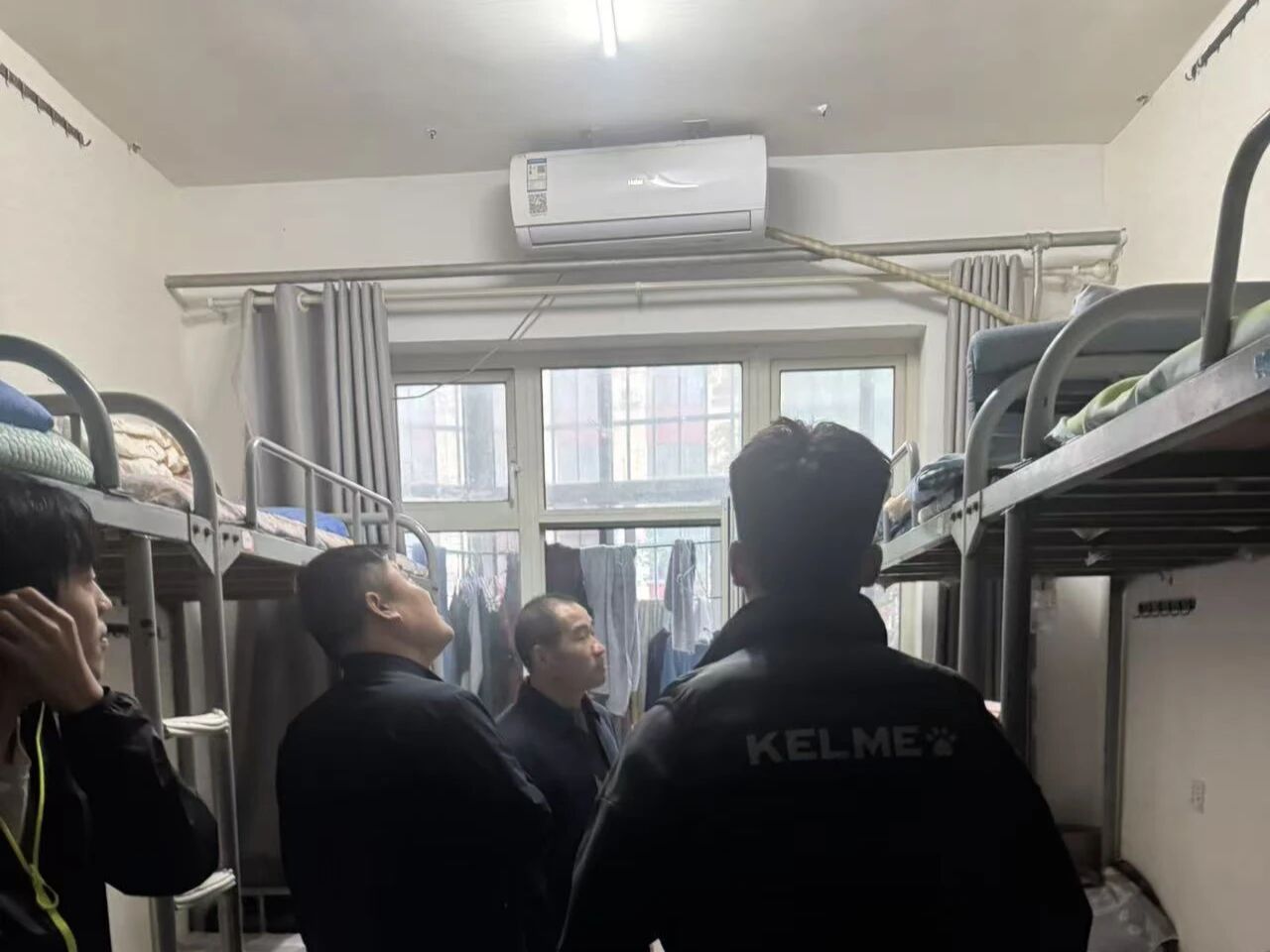 在检查过程中,李晓鹏与各位团委老师分组行动,分别深入男女生宿舍区域,展开细致入微的安全检查工作。其中,李晓鹏与陈明、王鑫、张岳晟老师一同走访男生宿舍,对宿舍内的用电规范、电器设备、消防设施等进行了全面排查,重点关注是否存在违规电器使用、线路老化、插座过载等安全隐患。李晓鹏在现场检查时强调:“宿舍安全是校园稳定的基石,每位同学都要牢固树立安全意识,严格遵守宿舍管理规定,从源头上杜绝安全事故的发生,共同营造安全、文明、和谐的居住环境。”陈明结合日常管理实际,向同学们详细讲解了宿舍安全细则,提醒大家要从小事做起,从细节入手,切实筑牢安全防线。