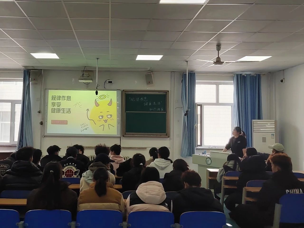 为了让同学们养成良好的作息习惯,更好的应对接下来的大学生活,提高自身的自律能力,保持良好规律的作息,宿舍服务部于11月30日在西校区5# 406教室举办“规律作息,健康生活”讲座活动。