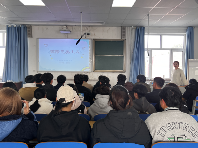 王丽丽通过视频和PPT从“完美主义的定义、表现、原因、影响及如何破除完美主义”五个方面展开本次讲座。同时,在活动中她列举了多种属于完美主义的常见行为,引导同学们说出自己的认识,由此加深同学们对“完美主义”抽象定义的理解。通过生动的案例和深入浅出的讲解,向同学们阐述了破除完美主义的重要性,并分享了一系列实用的方法和技巧,使同学们认识到不完美才是生活的常态,鼓励他们勇敢地接受自己的不完美,以更加轻松和自信的心态去面对学习与生活中的挑战。王丽丽耐心细致地解答了同学们的疑问,赢得了同学们的一致掌声。