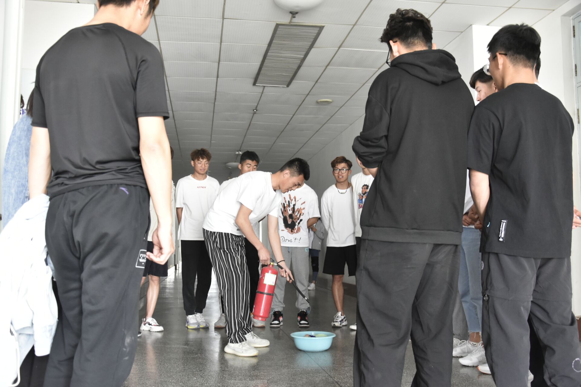 300名2020级新生和研究生新生按班级分批次于实验楼A-608教室进行安全专业培训和应急演练活动。 专业老师在讲话中强调了实验室安全事故应急预案的重要性,要快速、高效、有序地组织开展事故抢险、救援和调查处理,能够预防和减少突发性灾害事件及其造成的损害。针对防疫和实验室安全方面的有关规章进行了说明,详细讲解了疫情防控期间使用酒精消毒安全注意事项以及火灾现场自救逃生技能和扑救初期火灾的方法等内容,讲解了实验室安全防护设施的正确使用方法,以及应对危险化学品泄露的正确处置流程。保障实验室安全最重要的是要提升广大师生的安全防范意识,要求高度重视实验室安全,确保人身财产安全。 受疫情的影响,在进行应急演练之前,专业老师带领志愿者们对演练所需要的场所进行了多次喷洒消毒液消毒杀菌,每天至少一小时开窗通风,保持空气流通,在疫情防控的决胜时期应急演练不松懈,本次演练包括“实验室灭火疏散及受伤救护”、“实验室废液泄露处置”、“消防器材使用培训”、“酒精灯操作失火应急处置演练”四部分,应急演练活动中,专业老师首先讲解了灭火器的使用方法,之后让同学们现场体验用灭火器灭火,提高学生自护自救的实际操作能力。演练过程配合顺畅、科学规范、安全有序,起到了良好的培训和教育示范果。 通过本次讲座以及应急演练,增强了自护自救技能,填补了师生紧急救护和逃生技能的空白,让学生们在抵抗疫情的同时提高了消防安全意识和自防自救能力,为打赢战“疫”期间火灾防控工作营造了良好的消防安全环境。