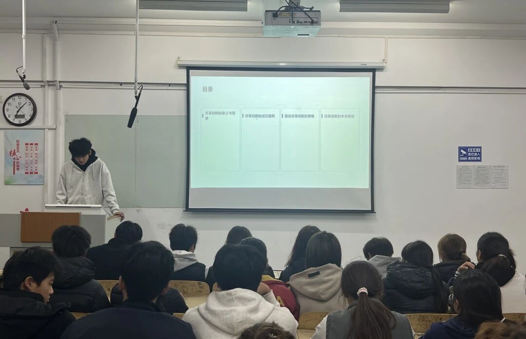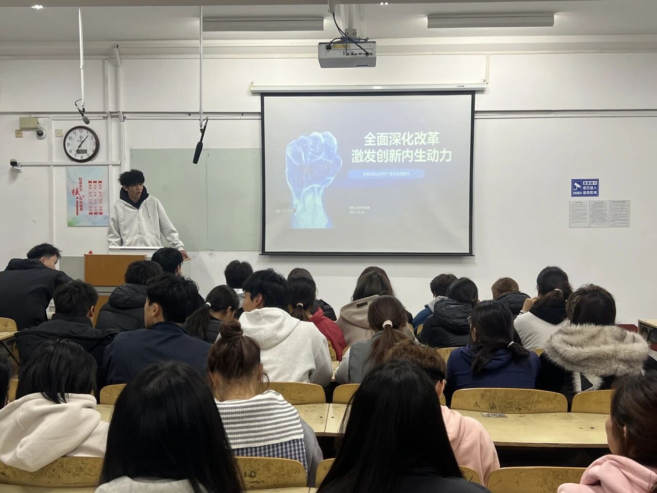 西校区8#509教室开展“全面深化改革,激发创新内生动力”活动。本活动是在马克思主义学院思政课教师的理论指导下开展的,旨在引导学生将思政理论与科创实践深度融合。 活动负责人姜宇欢通过思想启迪与形式洞察、创新赋能与方案共创、成果展示与交流心得三种内容主题来开展活动。围绕最新的改革政策,帮助同学们把握创新的宏观方向并了解当前政的红利。根据当前政策与形式来进行改革创新设想的方案讨论,各小组精彩呈现其改革方案,互相学习优点,并深化对改革创新的理解。 活动开始,科创发展部张景皓围绕“认识改革创新是新时代的迫切要求”展开讲解,结合当下科创前沿案例,阐述改革创新对个人成长与社会发展的重要意义。随后,学生分组进行学生创新创业项目模拟实践,无不凸显争做改革创新生力军。活动最后,各小组展示成果点评时强调“要树立改革创新自觉意识,在实践中不断增强改革创新的能量本领”。 通过此次活动,学生对改革创新的时代要求有了更深刻的认识,在实践中提升了改革创新能力,进一步明确了以改革创新助力个人发展与社会进步的方向,为成为新时代改革创新的中坚力量奠定了基础。 (编辑人:何方呈)