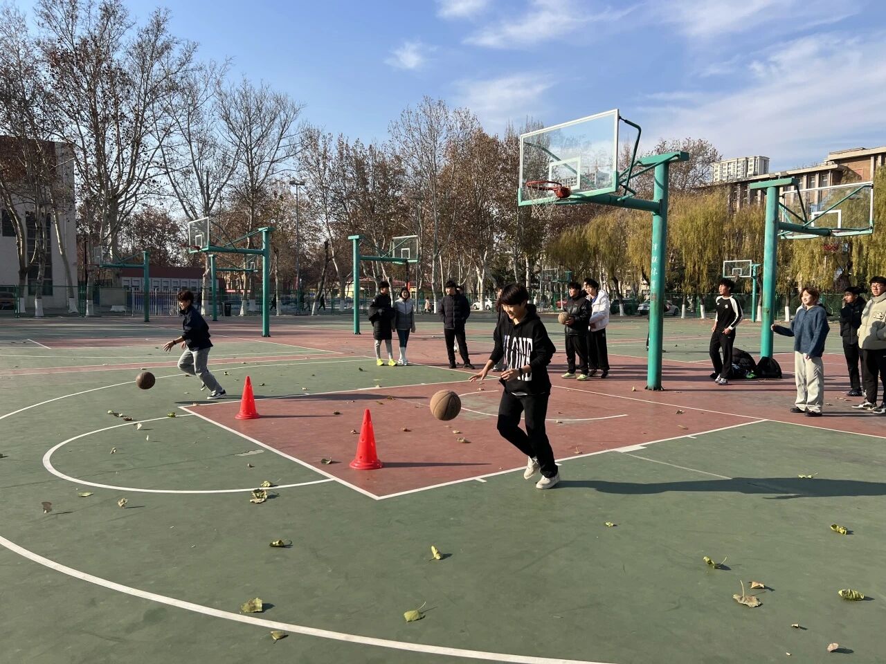 比赛围绕运球绕桩、定点投篮、传球精准度三个核心项目展开,全面考察选手的篮球基础技能与临场应变能力。比赛过程中,选手们精神饱满、动作利落,充分展现扎实训练成果