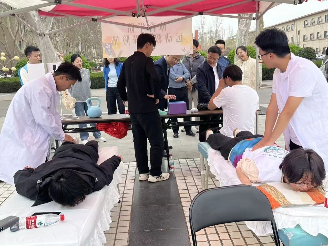 本次活动以运动康复专业学生提供的专业康复理疗服务为核心,向同学们传递“预防大于治疗”的科学运动理念,帮助大家掌握运动损伤防护知识,强化运动安全意识,现场互动氛围热烈。活动还结合同学们实际需求,开展体态快速评估与久坐拉伸教学指导。活动结束后,工作人员及时收集参与者反馈,有效解决了同学们“想运动却怕受伤”的顾虑,进一步营造了安全、健康的校园运动氛围,为校园体育文化建设注入了积极动力。