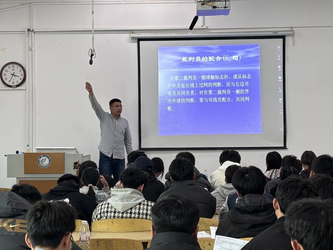 本次培训课程丰富实用,学院有幸邀请到徐兰君、彭鑫、王元娜三位资深排球裁判员授课。在规则讲解环节,彭鑫老师结合实际案例,将抽象规则条文生动展现,帮助学员轻松掌握要点。王元娜老师则专注于裁判实践教学,通过模拟比赛场景,指导学员准确运用裁判手势和哨音,在复杂情况下做出正确判罚。徐兰君老师的悉心指导,让学员们的实践能力显著提升。