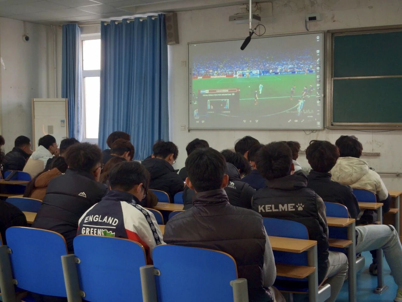 活动最后,同学们共同观看卡塔尔世界杯赛事。当卡塔尔世界杯的哨声吹响,活动现场直接变身“沉浸式观赛现场”!看球不只是“看个热闹”,更是把世界杯的“专业养分”,转化为训练时的动力、学习时的思路。在精彩的比赛中进一步认知足球竞赛形式、学习技术经验。