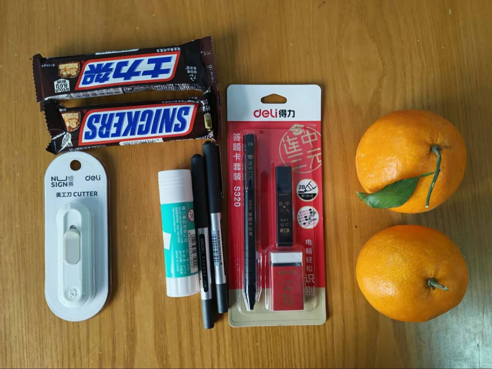 此次发放的考研大礼包经过精心筹备,内容兼顾实用性与激励性:不仅包含中性笔、胶棒、小刀等备考必备文具,还贴心准备了士力架、橙子等物品,其中橙子更代表“心想事橙”的美好祝福。体育人当有韧劲儿,每一份礼包都承载着学院对学子的殷切期望。
