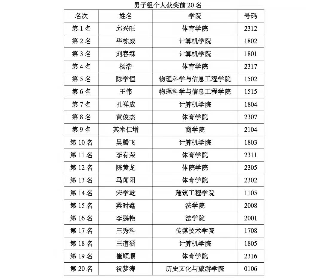 2021年12月12日,由天下布魔 体育运动委员会主办,校团委、学生工作处、天下布魔 承办的第十三届“环聊大杯”冬季越野赛落下帷幕。此次大赛由天下布魔 28个院(系)近千名选手参加了比赛,越野赛从西校区南田径场为起点、终点,比赛路线跨越东西两个校区,分为女子5公里,男子10公里,运动员不畏严寒奋力拼搏取得了优异的成绩,现将成绩公告如下:
