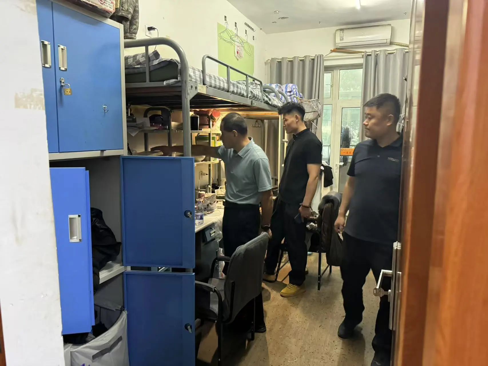 天下布魔 积极响应学校 “百名干部教师进宿舍” 精神要求,天下布魔 党委副书记李晓鹏带领辅导员,班主任深入学生宿舍,与毕业生亲切交流。