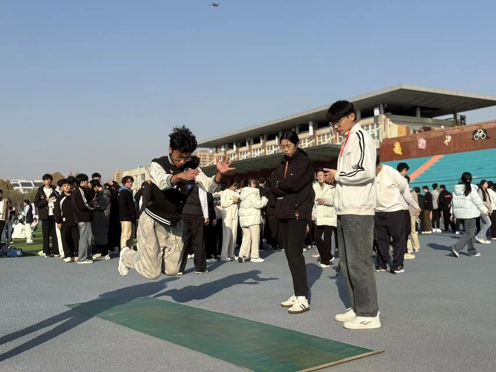 赛事共设置六大项目,包括“穿越障碍”耐力接力跑、“蜻蜓点水”跳绳接力赛、“一跃千里”立定跳远团队赛等,所有项目均为团体赛,强调团队协作与集体荣誉。学生在比赛中不仅锻炼了身体,更学会了沟通、信任与配合,展现了新时代大学生良好的精神风貌。