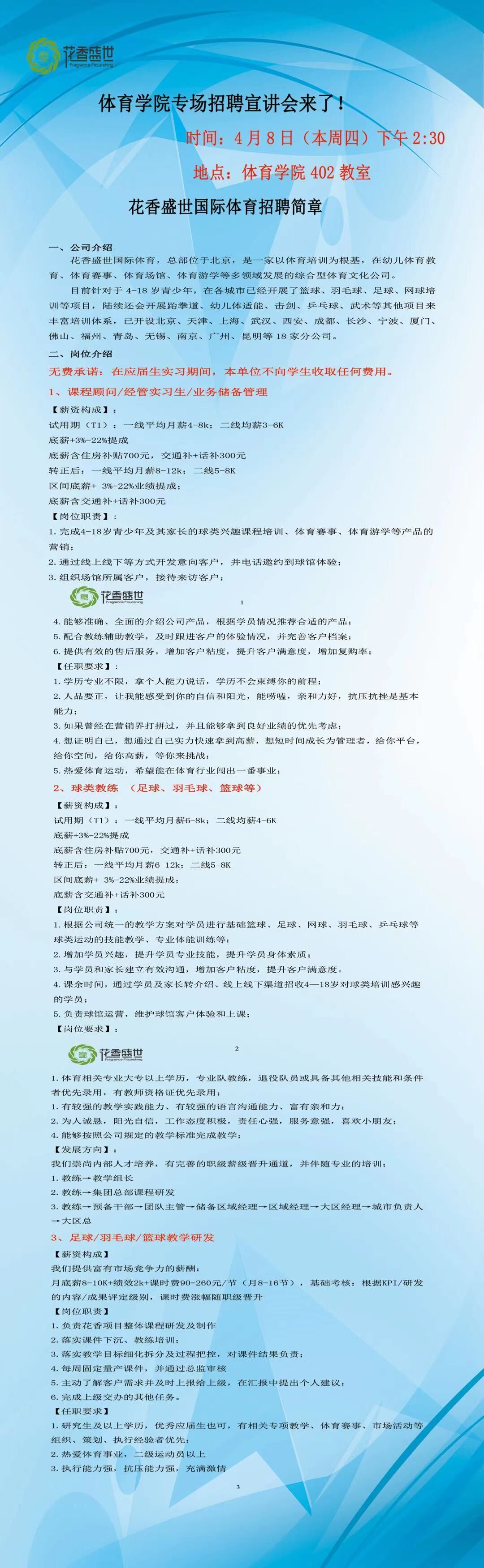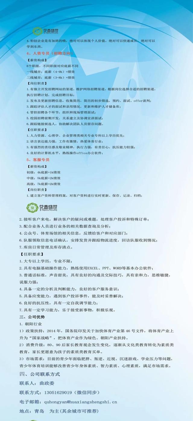 2.横向发展(经管实习生):根据个人综合能力,可向人力资源、场馆运营、财务、客服等部门岗位发展;